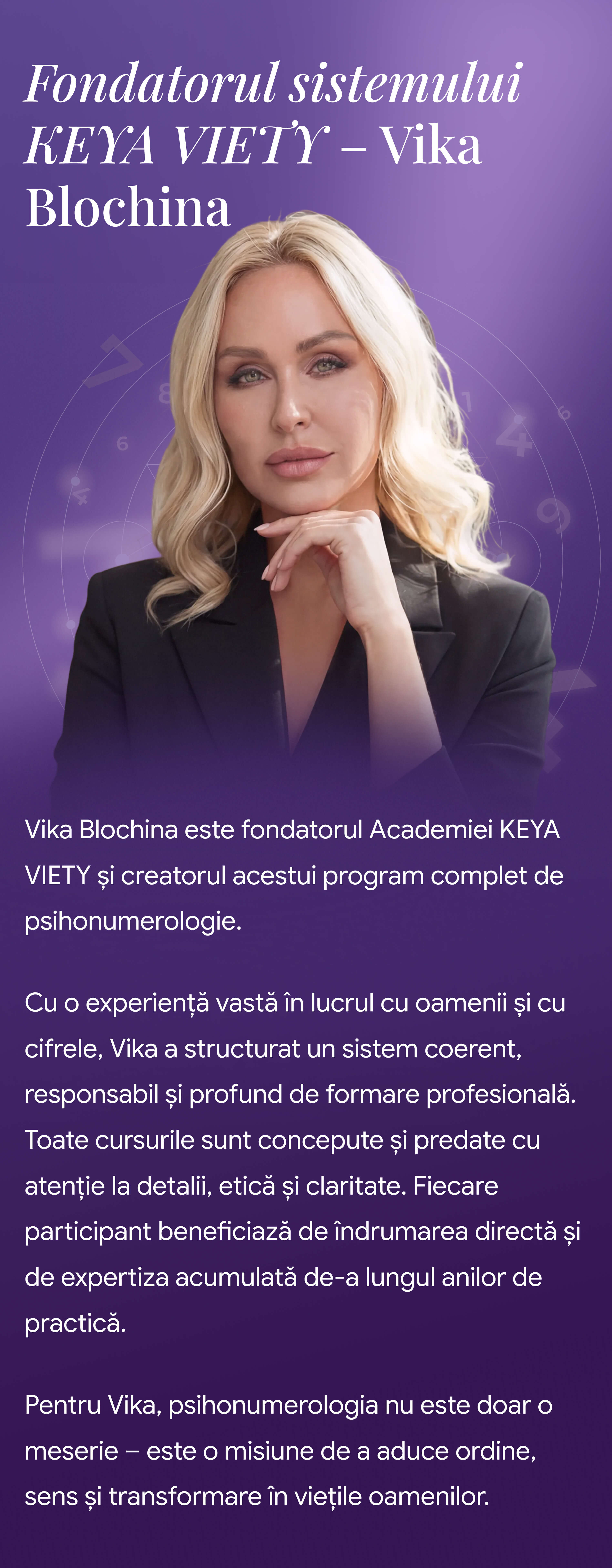 A doua cheie descoperă trăsăturile esențiale care îți definesc parcursul de viață și misiunea personală. Aceasta relevă lecțiile karmice pe care le ai de integrat, provocările recurente și potențialul tău cel mai profund. Este harta ta interioară spre împlinire și echilibru.