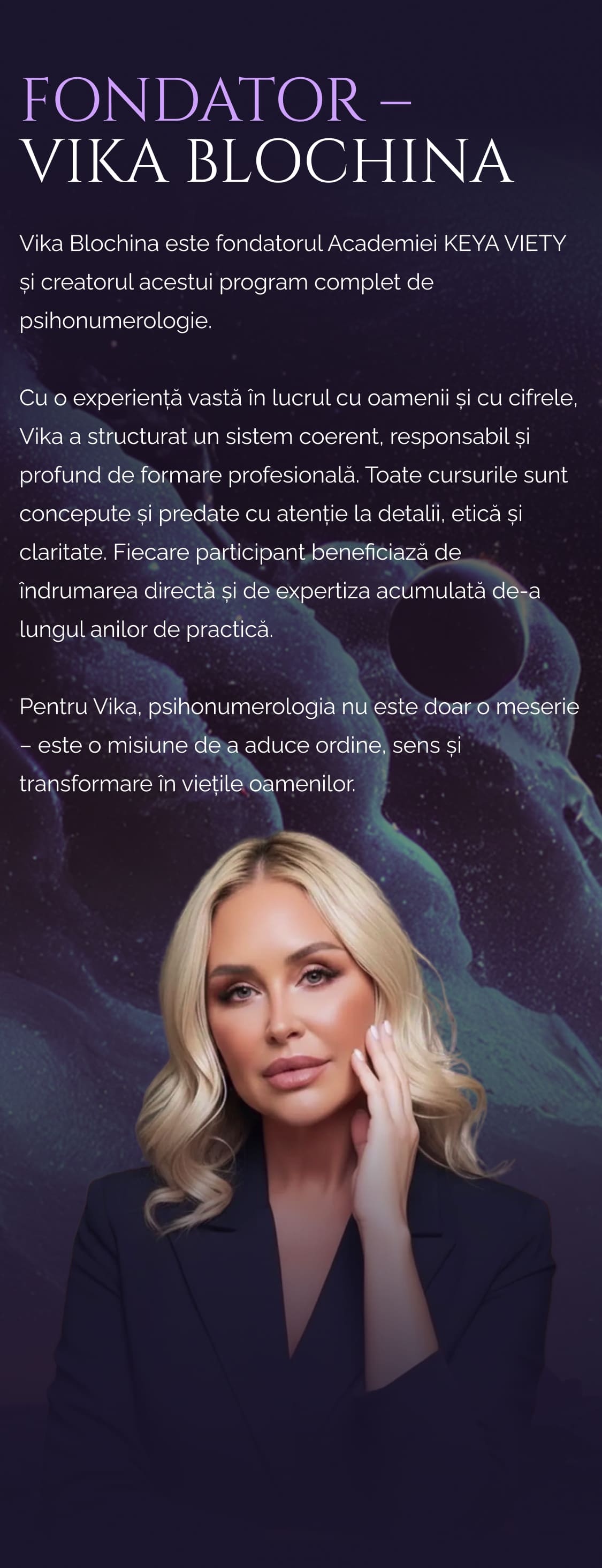 Vei învăța cum funcționează structura ta interioară, ce te blochează și ce îți susține dezvoltarea, într-un cadru clar și logic.